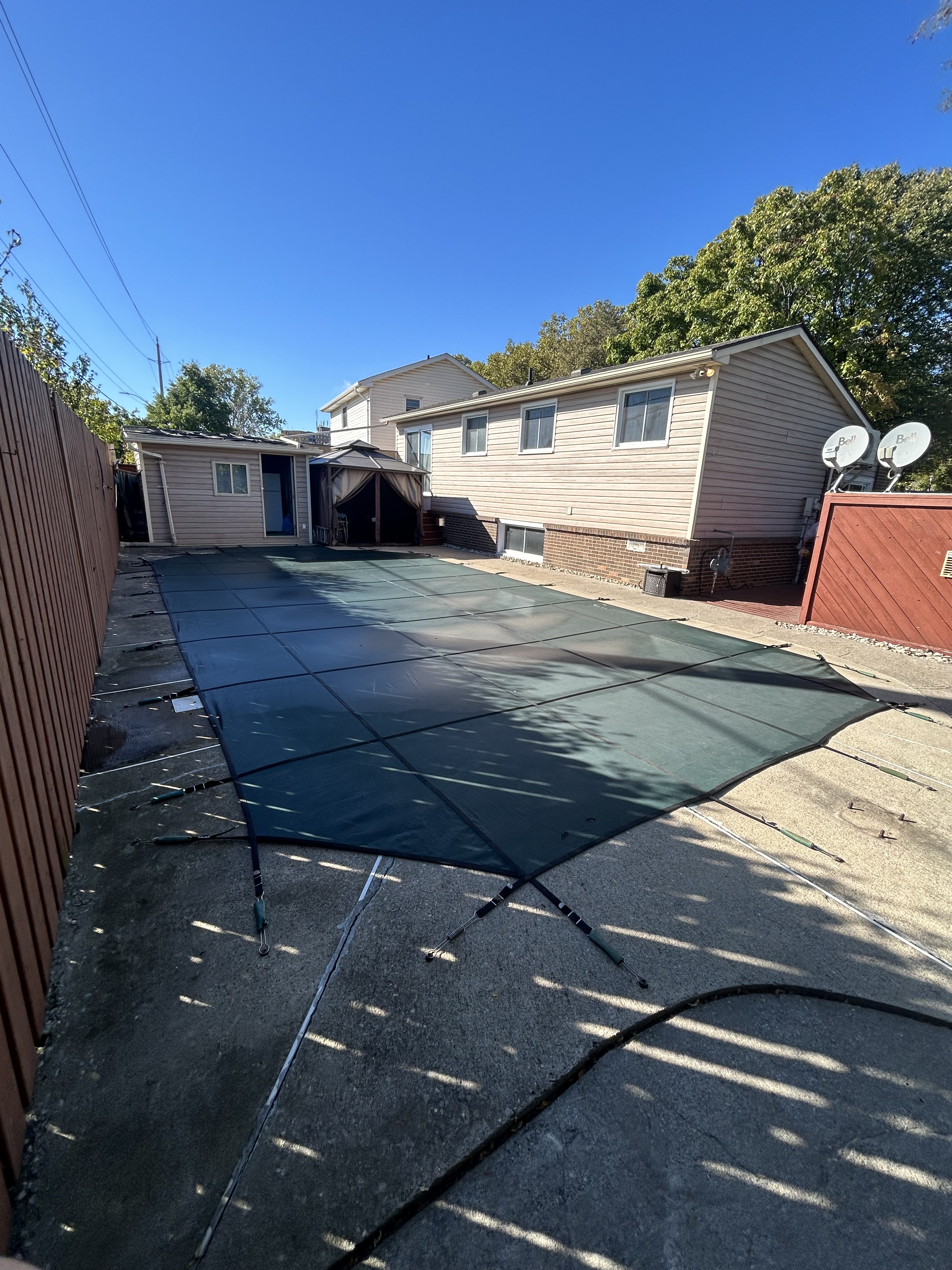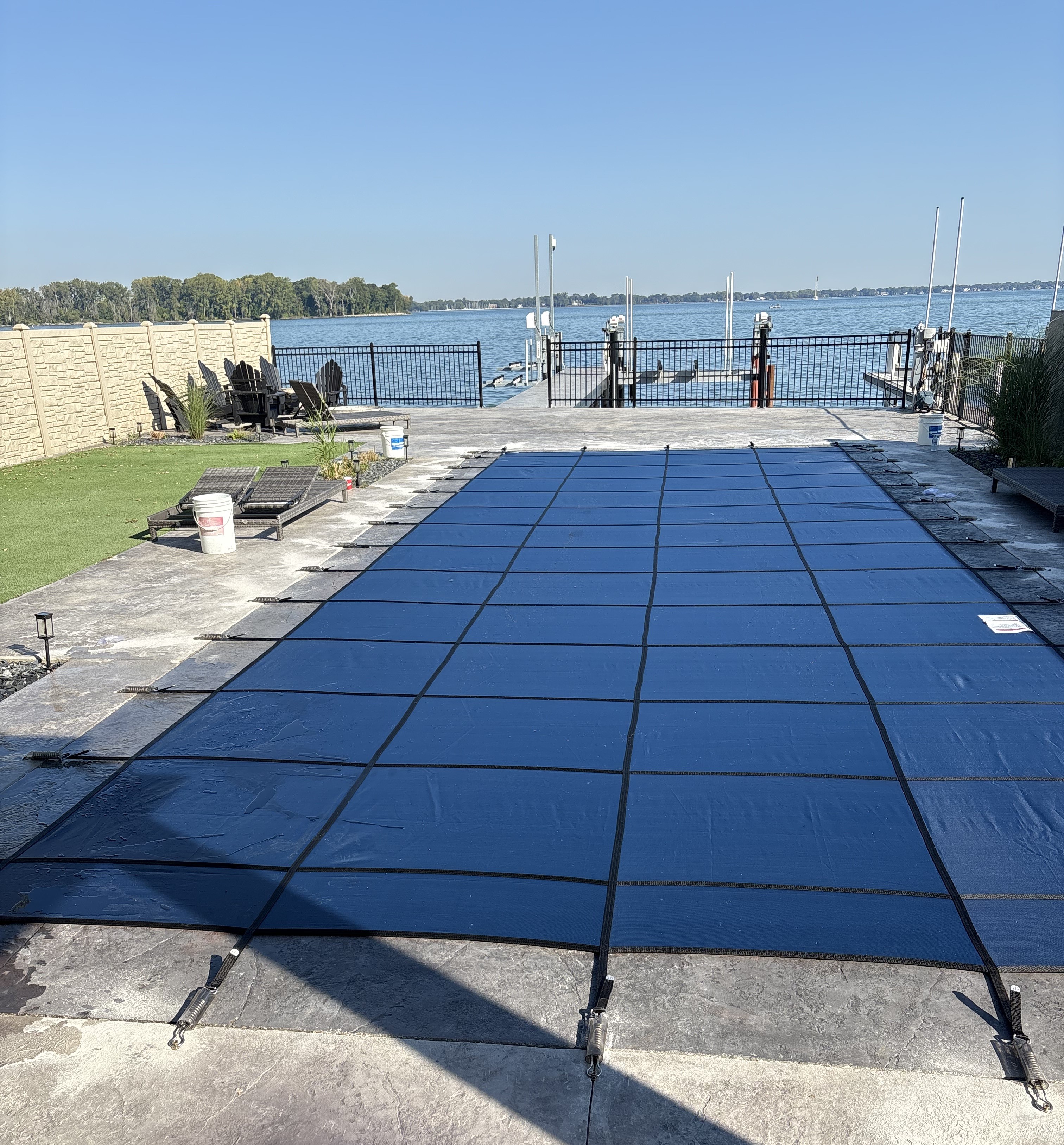 Closing includes lowering of the water, removal of fittings and ladders, blowing of lines, winterizing equipment, adding chemicals and installing cover. We also offer new safety covers and installs.