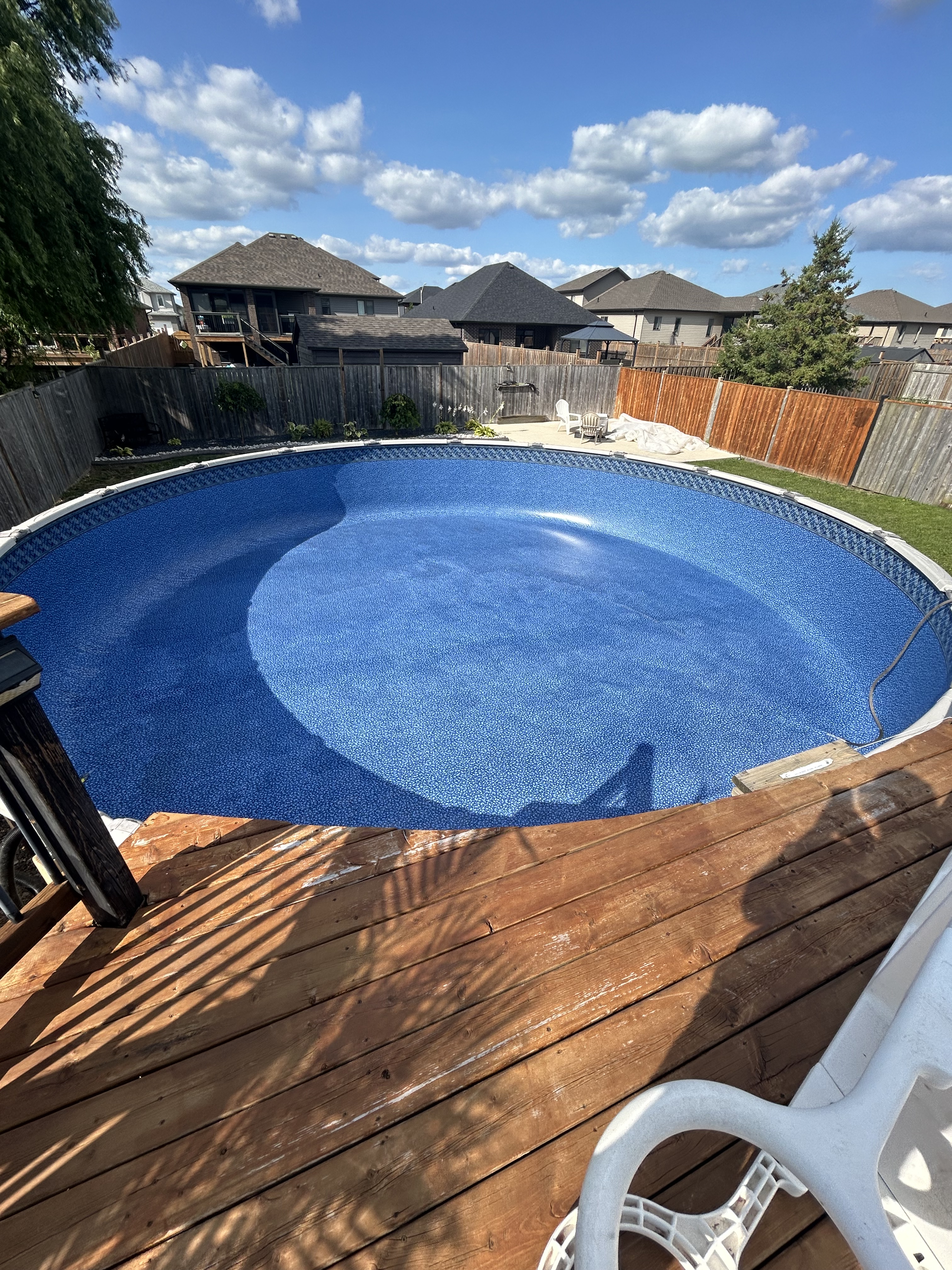 On a weekly basis we will take a water test, skim leaves, vacuum, brush liner and add chlorine. This ensures your pool will stay in pristine condition throughout the season.